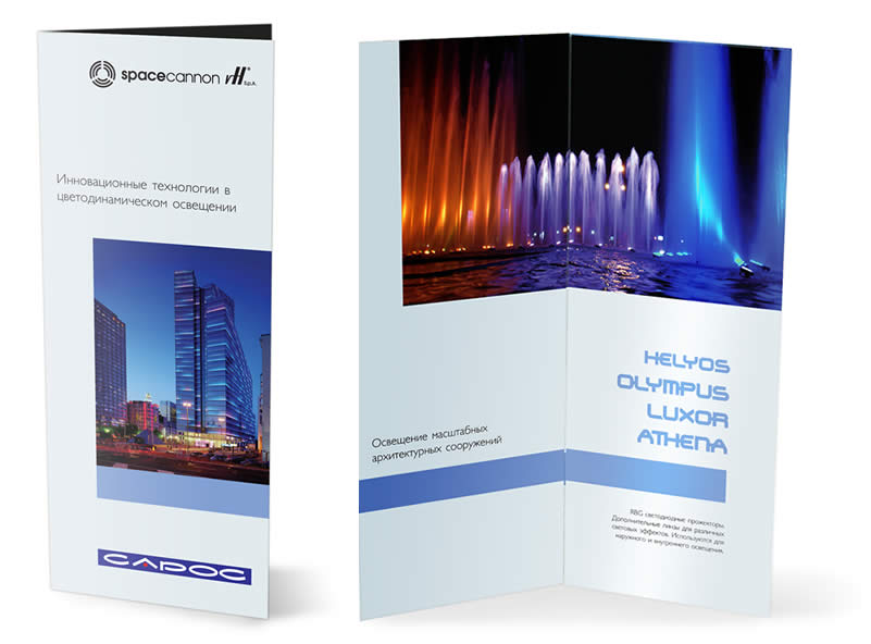 Задача: разработать презентационную брошюру для серии светильников SpaceCannon.